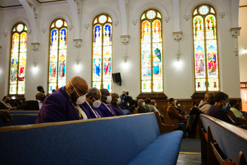 A service is held with the families and the community of Andre McNeil, Geraldine Talley and Ruth Whitfield at Antioch Baptist Church on May 19, 2022, in Buffalo, New York. | Source: Mustafa Hussain / Getty